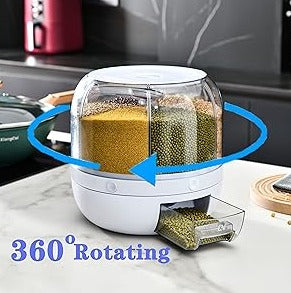 Este dispensador de granos redondo con giro de 360° está diseñado para ofrecer organización, frescura y comodidad en tu cocina. Fabricado con materiales de grado alimenticio PP + PET + PS, es resistente, seguro y libre de olores, ideal para almacenar todo tipo de alimentos secos con total confianza.